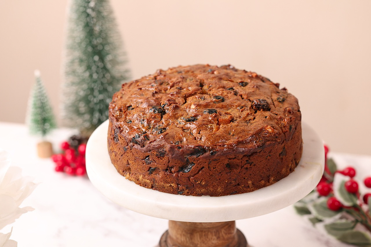 Fresh citrus oils brighten the cake and give it that unmistakable Christmas aroma.