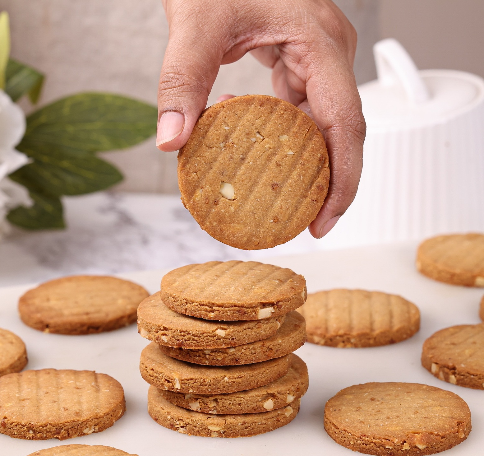 These biscuits are inspired by classic bakery-style cookies but made with a more wholesome twist. If you enjoy recipes like atta biscuits, jaggery biscuits, or cashew cookies, you will love this version too. They pair perfectly with a cup of chai and are easy to make at home with simple ingredients.
