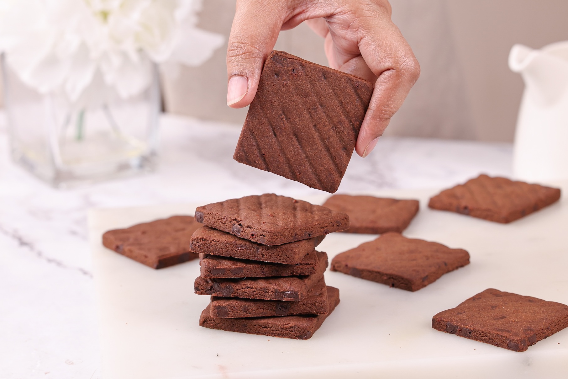 Cocoa powder gives these biscuits their classic chocolate flavour. It makes them taste similar to store-bought Hide & Seek biscuits.