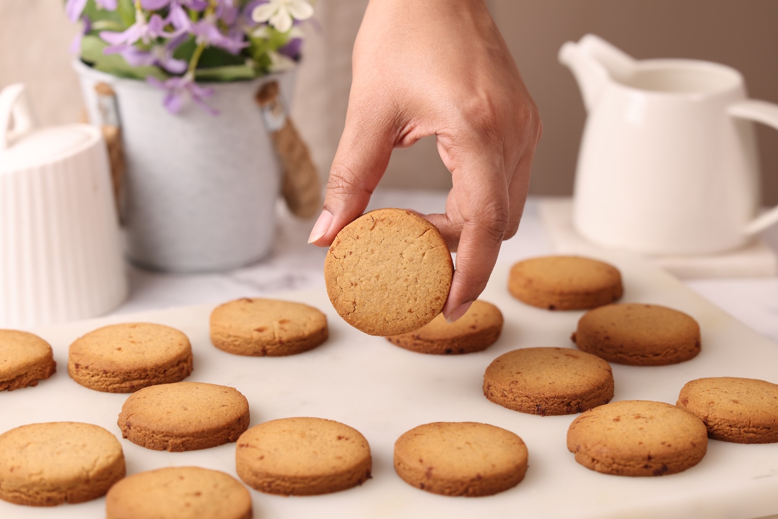 Jaggery adds natural sweetness and a deep caramel-like flavor. It also gives the cookies a beautiful golden color.