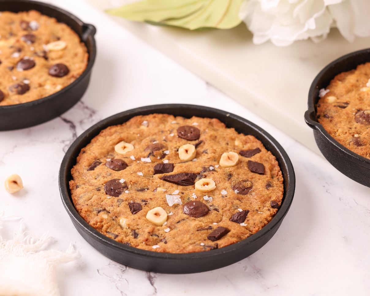 What makes this recipe extra special is that it can be made with paneer for a higher protein version, or without it if you prefer a more classic texture. Plus, you don’t even need an oven—this skillet cookie can be made easily on the stovetop too.