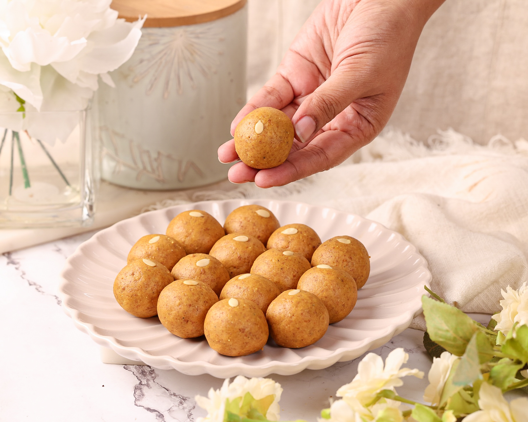 Moong dal, ghee, nuts, and jaggery are all considered warming foods, making these laddus ideal for colder months. They provide sustained energy, help keep you full, and work well as: