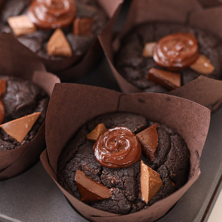 Rich in antioxidants and mood-boosting compounds like theobromine, cocoa powder is the star of this recipe. Blooming it with hot milk or water and a little instant coffee enhances its deep chocolate flavor, making the muffins intensely fudgy.